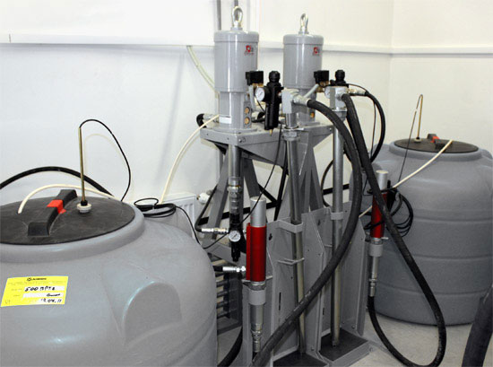 10:1 H.D.-pump for large pipe systems and multiple simultaneous dispenses.